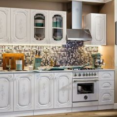 Материал фасада: МДФ в пленке ПВХ с использованием сложной и глубокой алмазной фрезы.