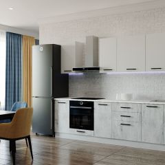 - Столешницы цельные со скруглением по переднему краю, пластиковым покрытием и силиконовый каплесборник (защищает фасады нижних модулей от попадания влаги и разбухания);